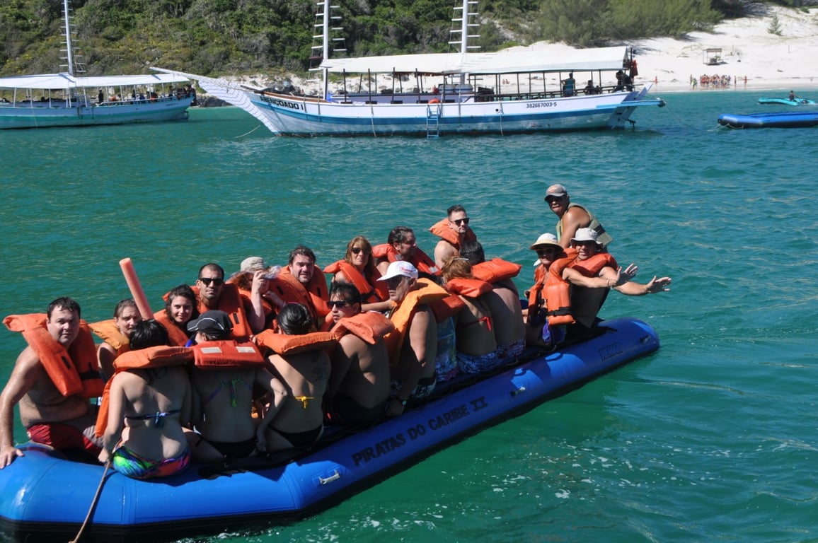Buscamos nos hotéis e pousadas a partir das 07h (confirmar horário) e levamos diretamente para Arraial do Cabo para o embarque em nossa escuna, caracterizada com a temática do sucesso mundial "Piratas do Caribe", lá; você irá encontrar uma equipe preparada para prestar o melhor atendimento e lhe proporcionar a melhor das experiências, serão cerca de 04h de passeio de barco pelas praias de areias brancas e águas cristalinas com belezas naturais de tirar o fôlego, com duas paradas de aproximadamente 01h para recreação, são elas: