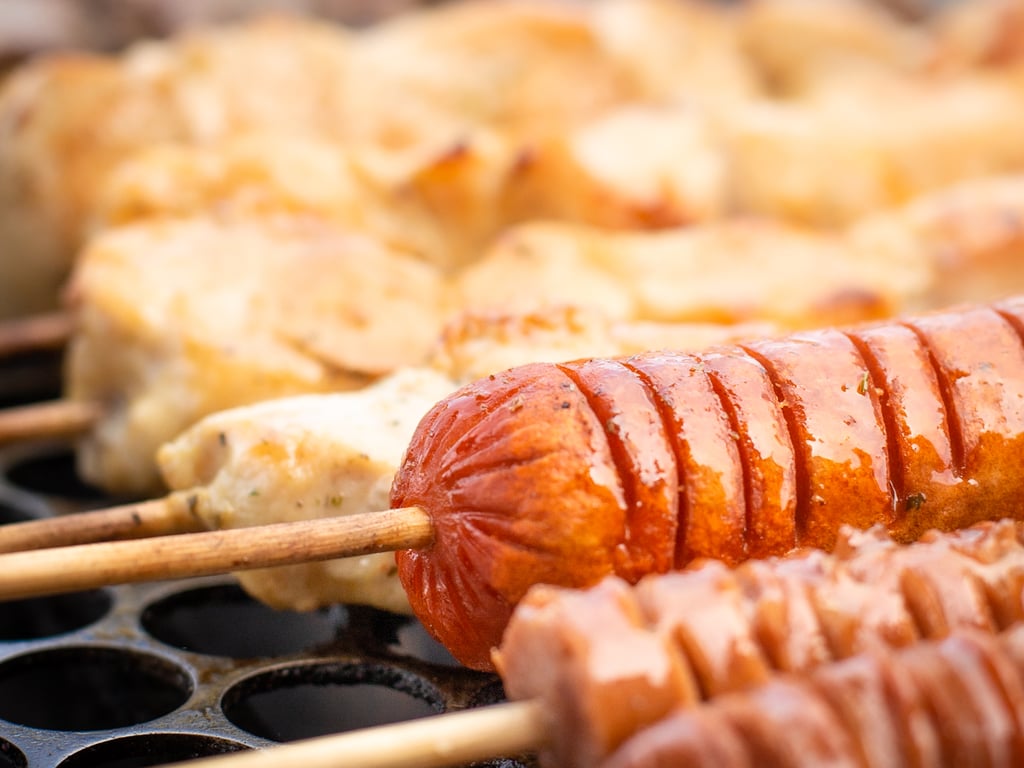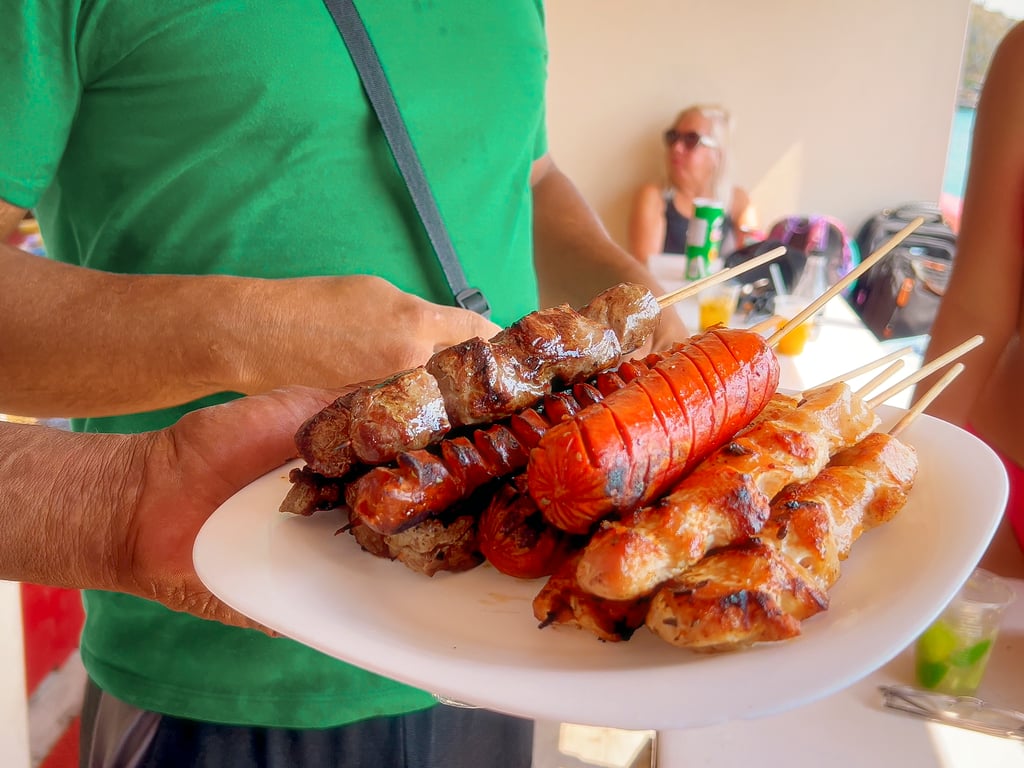 Se você gosta de um petisco durante o passeio, poderá degustar de espetinhos deliciosos e feitos na hora.